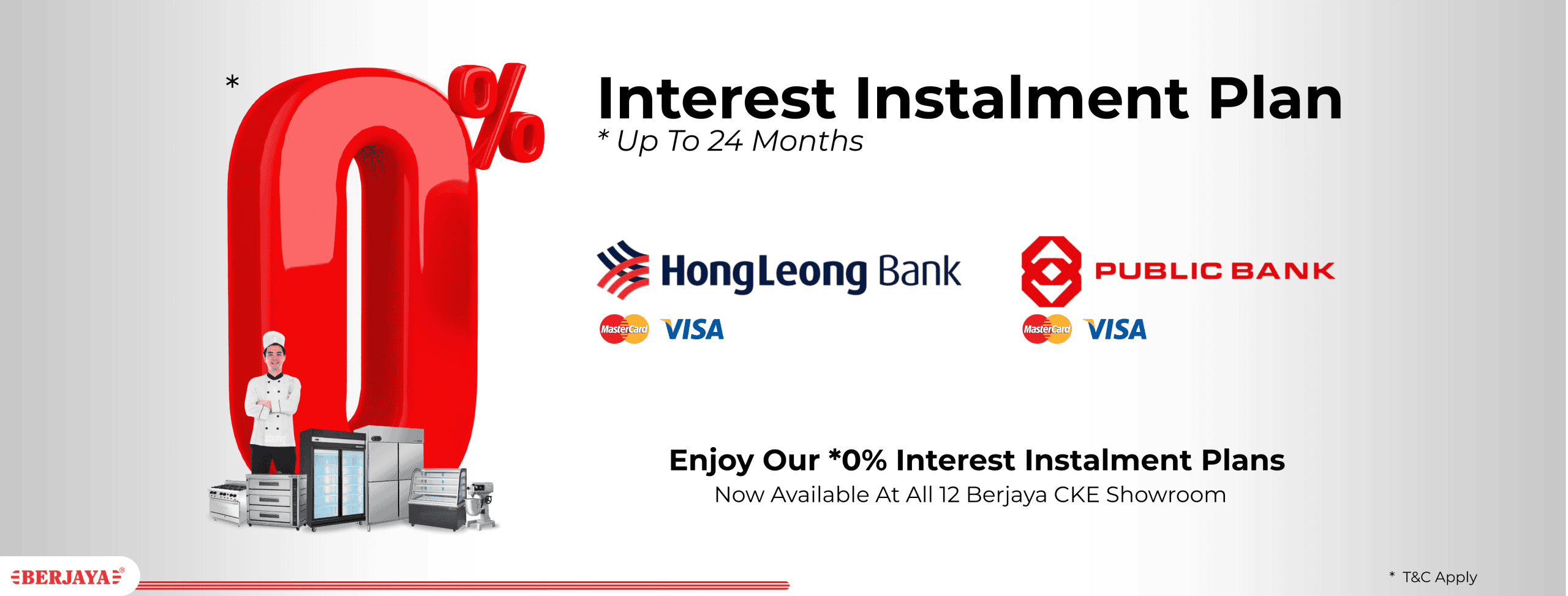 Enjoy our 0% interest instalment plan when you purchase Berjaya CKE Commercial Kitchen Equipment at any of our showroom.